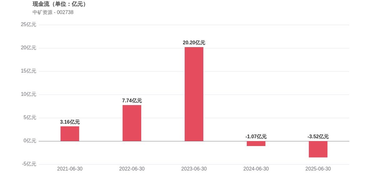 在经营稳健性方面,中矿资源面临现金流压力加大的挑战,存货周转天数虽有改善但仍处于较高水平。经营活动产生的现金流净额为-3.52亿元,较上年同期-1.07亿元进一步恶化,显示出公司经营性现金流持续承压。此外,2025年上半年的资产负债率为29.45%,同比上升6.93个百分点,这意味着公司债务负担有所加重。