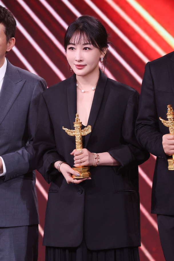 万达电影董事长兼总裁陈祉希于颁奖现场领奖优秀故事片