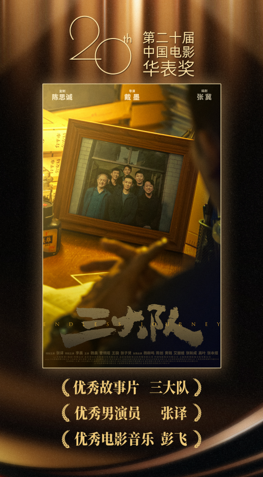 颁奖现场宣布,由万达电影担任第一出品的《三大队》,荣获三大奖项:优秀故事片、优秀男演员(张译)、优秀电影音乐(彭飞)。