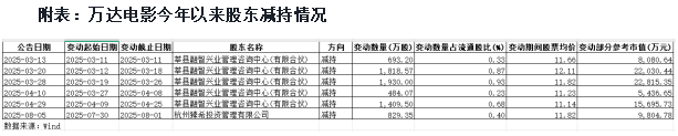 值得注意的是,就在此次减持公告发布的前一日(8月1日),万达电影刚刚披露了另一大股东莘县融智兴业管理咨询中心(有限合伙)(以下简称“莘县融智”)的减持预披露公告。莘县融智及其一致行动人合计持有公司5.0456%股份,计划在未来3个月内减持不超过公司总股本2%的股份,减持原因为自身资金需求。据资讯统计显示,今年以来,莘县融智和杭州臻希两大重要股东自3月11日起至8月1日,共计减持7164.68万股,涉及资金8.39亿元左右。短期内相继宣布或实施减持,引发市场对公司股权结构变化的关注。