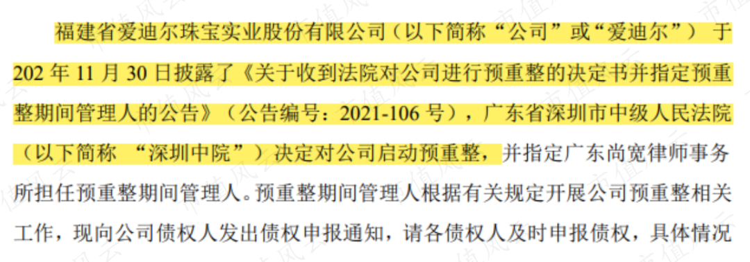 2021年7月,爱迪尔因为连500万都拿不出来,而被债权人向法院申请预重整,2021年11月,深圳市中级人民法院决定对爱迪尔启动预重整。