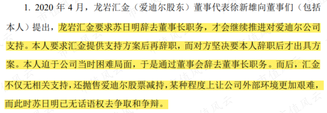 苏日明称,自2020年4月,其卸任董事长以来,虽然身为实控人,但是无论在公司重要事项决议还是日常经营层面,已经失去公司的控制权。苏老板还对此进行了枚举。