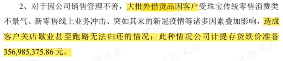 在这里,风云君还是要重点说一下,与其他行业不同,金银珠宝具有天然的交易属性,是典型的硬通货,无论是其近7亿应收账款减值,还是被客户卷走的4亿存货,都可以理解成至少11亿的金银珠宝消失了。