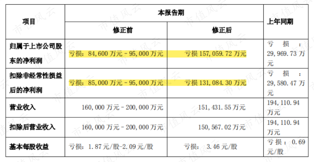 谁曾想三个月后,2021年4月28日(年报公告两天前),爱迪尔又发布了一条业绩修正公告,修正后的数据则变为了预亏15.71亿,几乎是之前预告最低亏损额的double!