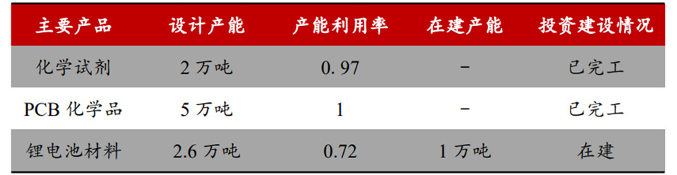 作为PCB电镀液化学品龙头光华科技,始创于1980 年,于2015年在深交所上市,主要从事专用化学品的研发、生产、销售和服务,业务涉及化学试剂、PCB化学品、新能源锂电池材料。截至 2021 年底设计产能分别为2万吨、5 万吨、2.6万吨,另有锂电池材料产能 1 万吨在建。