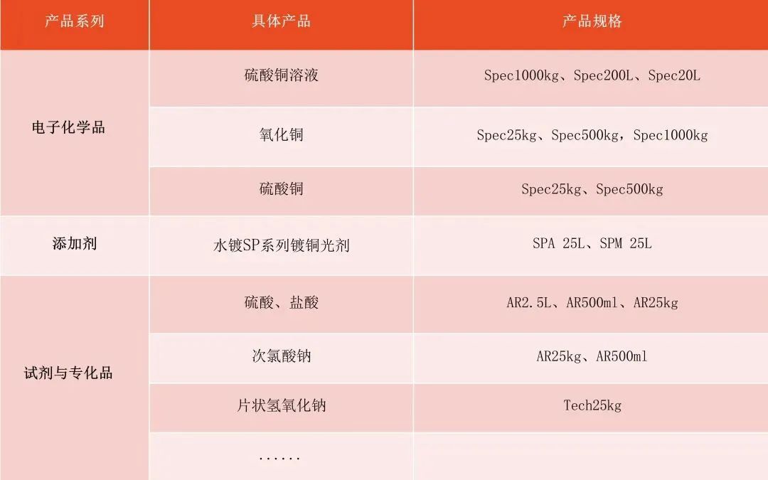 光华科技率先在国内建立 PCB 湿制程相关化学品整体解决方案,可为PCB湿制程全生产提供金属盐、药水及配套专用化学品和技术服务,目前产品涵盖氧化铜、填孔镀铜、沉镍金、棕化、褪膜等,产品性能达国际水平。