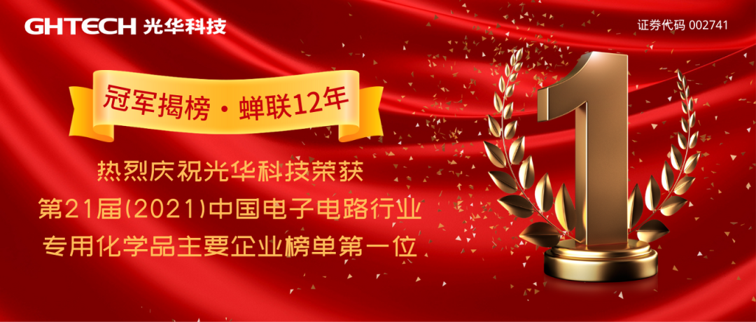 再夺榜首,蝉联12年!光华科技荣获第21届(2021)中国电子电路行业专用化学品主要企业榜单第一位