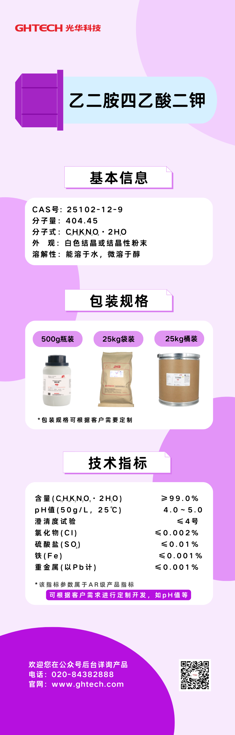 光华科技作为专业的化学品服务商,可提供EDTA二钾、氟化钠、草酸钾、柠檬酸三钠等体外诊断试剂原料。若您对我们的产品和定制化服务感兴趣,可留言光华科技公众号后台,或直接拨打光华科技联系热线(86)020-84382888,光华科技愿随时与您分享最新技术和优质产品。