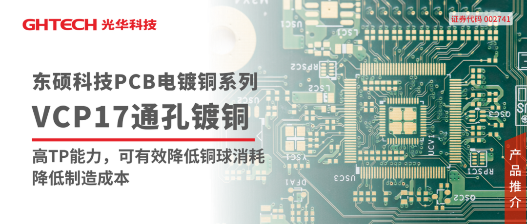随着电子信息产业的技术升级,加上经济环境压力的影响,对PCB电镀铜工艺的可靠性、高产能、低成本等方面提出了更高要求。这对国内本土供应商形成了严峻的挑战。光华科技旗下子公司广东东硕科技有限公司凭借创新研发能力与技术经验,自主研发出VCP17通孔镀铜镀液添加剂,从添加剂作用机理出发,专业有效地解决这一系列难题。该添加剂在大电流密度条件下深镀能力高于80%,铜球用量每平方米节省约2.5元,表现超出行业水平,能帮助客户在追求高效生产、保证产品可靠性的同时,有效节省制造成本。目前该款产品已逐步取代国外同类产品并上线批量生产,其综合能力获得了客户认可。