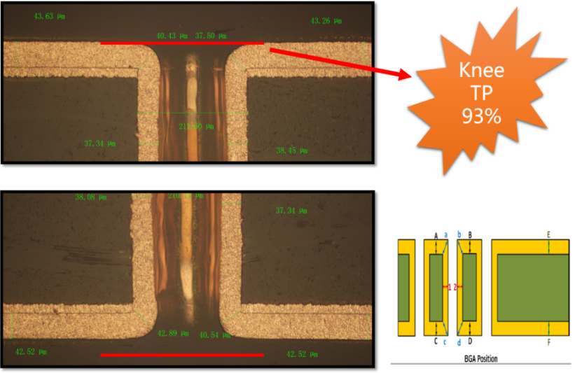 VCP17通孔镀铜的面铜平整性好,孔角无明显切削,Knee TP 90%,提高信赖性。