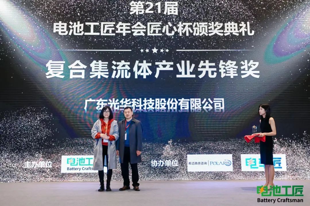 在上海举办电池工匠年会2024活动现场,重点探讨了电池安全与热管理、下一代电池创新及应用、数字化及零碳工厂、复合集流体等相关议题,超过800名新能源主机厂、电池企业、材料技术精英代表等出席。主办方根据光华科技在复合铜箔的产业贡献,颁发给光华科技“复合集流体产业先锋”荣誉奖项。作为新能源复合铜箔电镀化学品整体定制化服务解决方案的引领者,光华科技目前已和业内多数复合铜箔企业达成合作,为行业客户打造全方位、一体化、高性能、绿色化的解决方案,助力行业高质量可持续发展。这一荣誉是对光华科技在复合集流体领域所做出贡献的肯定,也是对其坚持不懈创新研发与努力推动行业产业化的鼓励。