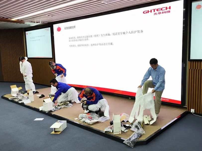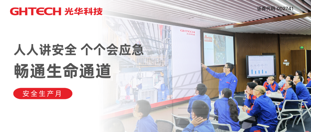 绷紧安全之弦筑牢安全防线。为深入贯彻落实习近平总书记关于安全生产重要论述,推动落实国家安全生产十五条硬措施,GHTECH光华科技以全国第23个“安全生产月”的契机,以“人人讲安全个个会应急——畅通生命通道”为主题,通过开展安全教育培训、应急演练、事故案例警示、安全知识竞赛等既有声势又有实效的安全能力提高活动,推动公司人员安全意识的拔高和应急处理能力的显著提升。光华科技持续以高标准的生产活动,为客户原料供应提供坚实保障,促进供应链的稳定与高效,用高水平安全保障行业高质量发展。