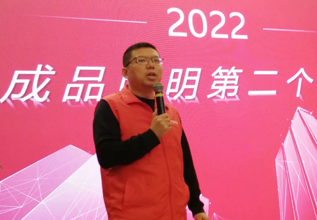 木林森通用照明山东区域经理徐肖辉现场带来了“山东苏北运营中心2021年工作总结”。他从“经销商销售情况”“产品占比情况”“推广活动情况”等方面详细讲解了“2021年山东苏北区域各地的市场形势”。此外,他还对2022年重点打造开关、卫浴等除常规产品外的标杆市场的推动政策进行展开分析。