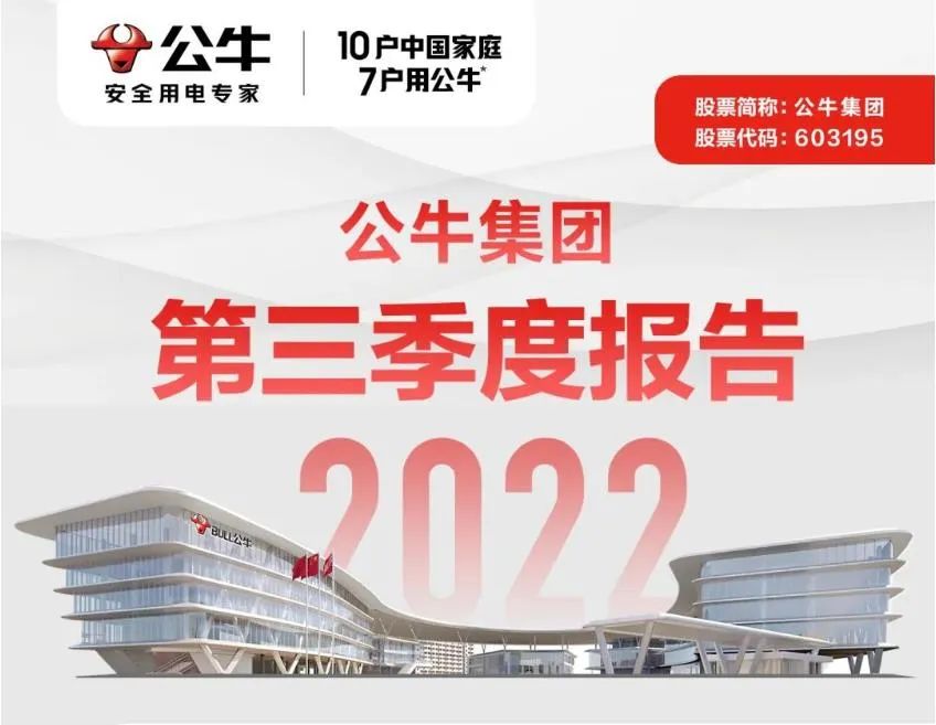 10月27日晚间,公牛集团股份有限公司(股票简称:公牛集团股票代码:603195)发布《2022年第三季度报告》称,2022年前三季度,公牛集团实现营业收入104.74亿元,较上年同期增长16.22%;归属于上市公司股东的净利润为23.61亿元,较上年同期增长7.03%。