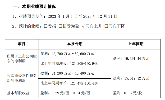 1月17日,木林森公布2023年度业绩预告。木林森预计,2023年归母净利润4.27亿元–5.06亿元,比上年同期增长120.20%-160.94%。