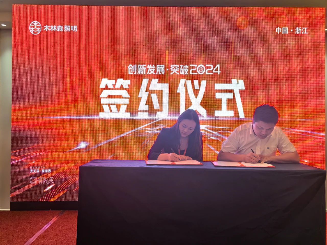 ▲2024年度木林森照明智能照明旗舰店签约及授牌仪式|滑动查看更多