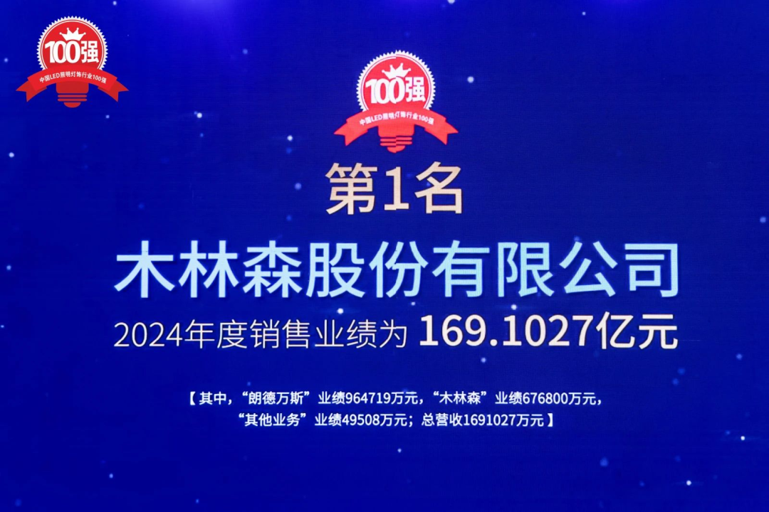 荣耀时刻,再续传奇!在备受瞩目的“2024中国LED照明灯饰行业100强”榜单揭晓之际,木林森以无可撼动的综合实力,连续第七年荣登榜首,再次摘得行业桂冠!