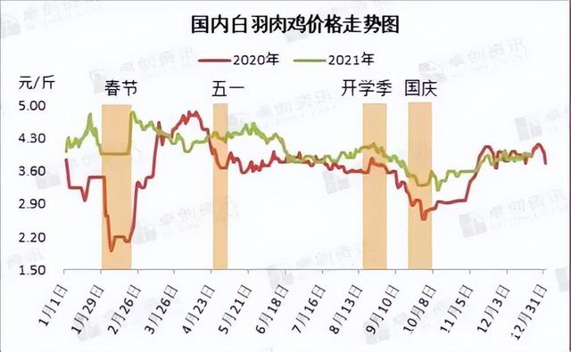 受新冠疫情、猪价持续下跌的影响,2021年整个国内白羽肉鸡行业高开低走,整体行情震荡下行。民和股份与益生股份两大白羽肉鸡企业均是上半年两个季度盈利,下半年两个季度因亏损。而仙坛股份,在前三季度共盈利了1.24亿元后,由于鸡价的一直处于低位,最终在第四季度也亏损0.42亿元。