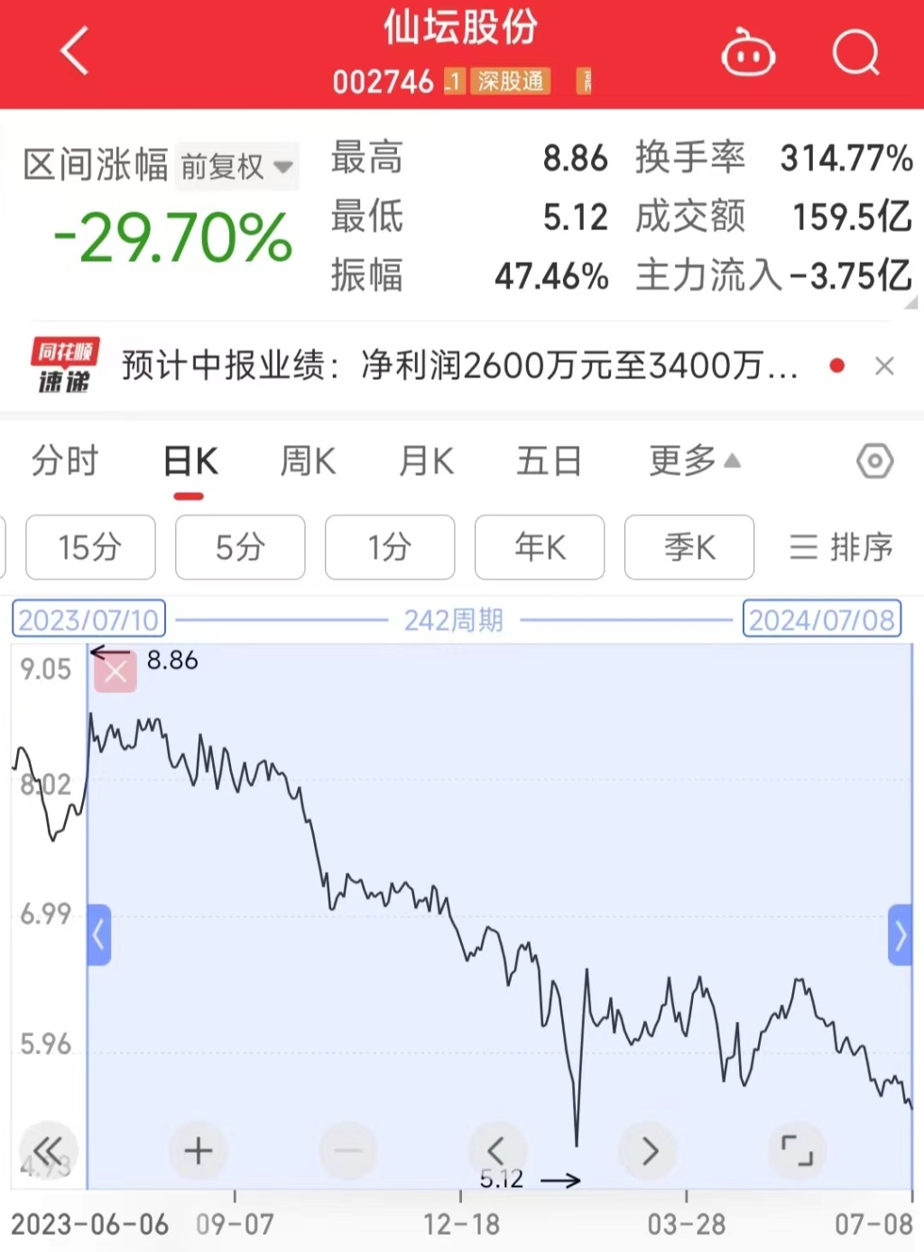 7月8日盘后,山东仙坛股份有限公司(下称:仙坛股份)发布业绩预告: