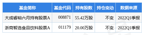 其中持有数量最多的基金为大成睿裕六月持有股票A,目前规模为0.52亿元,最新净值1.203(5月17日),较上一交易日上涨1.26%,近一年上涨0.32%。该基金现任基金经理为刘旭。