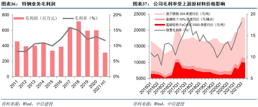 毛利率稳定可持续。公司特钢新材料业务盈利能力稳定,2013年起不锈钢产品毛利率保持在10%以上的水平,受益于行业供需环境良好、公司产品附加值高、下游行业分散、成本控制能力突出等多方面因素,长期来看,公司的毛利率水平可持续。公司主要原材料为不锈废钢、镍合金和铬铁合金等,占公司生产成本的90%左右,其中主要以废钢为主,其他合金只是调节成分,成本敏感性更多来自于废钢。今年废钢价格持续上涨,公司毛利率略有承压。
