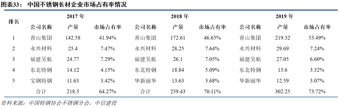 “大行业小龙头”行业格局,市场竞争风险不高。不锈钢棒线材产量占比较小,在这相对小众的领域,棒线材的供给格局呈现典型的头部聚集特征。其中不锈钢长材行业前4名(青山集团、永兴材料、福建吴航、东北特钢)的合计产量占行业总产量达70%以上,竞争格局相对明确,形成恶性竞争的可能性较小。公司生产的不锈钢棒线材产品主要针对中高端市场,对生产企业的资金实力、研发实力、销售能力的要求高,行业进入门槛较高,公司的市场竞争风险不高。