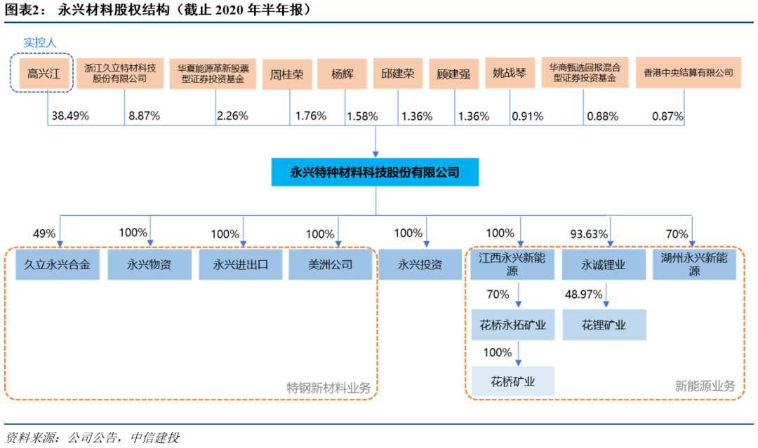 2017年以前,公司主要从事高品质不锈钢棒线材、特种合金材料的研发和生产,是中国不锈钢棒线材龙头企业,市场占有率长期稳居前三。2017年开始,公司全面进军锂电行业,自有锂云母矿山资源,已经建成了从采矿、选矿到电池级碳酸锂生产的锂电产业链,并开始下游电池布局。公司实现云母提锂技术的突破,是云母提锂龙头企业。