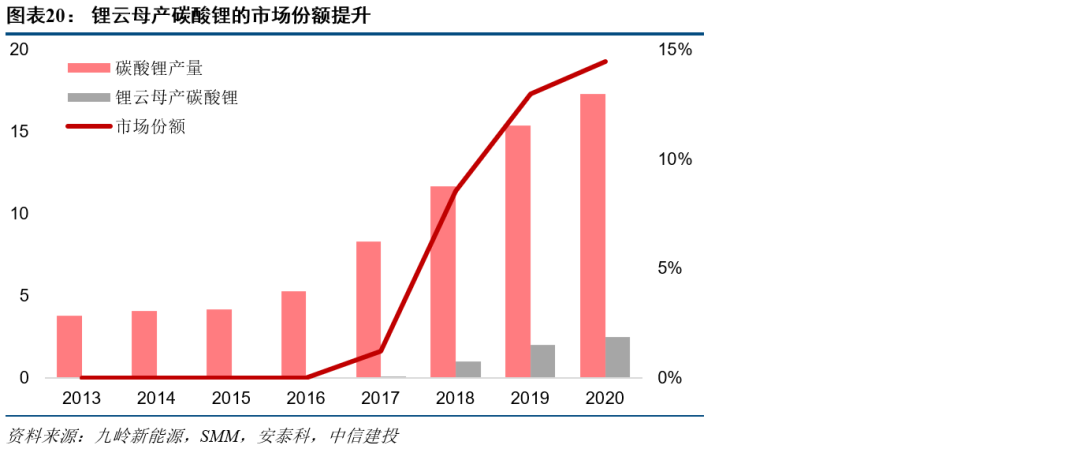 2017年起,公司着眼布局锂电材料产业,构建了从资源、采矿、选矿到碳酸锂深加工的电池级碳酸锂全产业链布局,已经具备成为行业低成本产能典范的潜质。公司技术团队对在碳酸锂行业具备较深的积累,在技术突破、产业化落地方面走在市场前列,通过精细化管理降本增效,利用既有优势扩大产能布局,目前已经成为国内云母提锂的领军者。