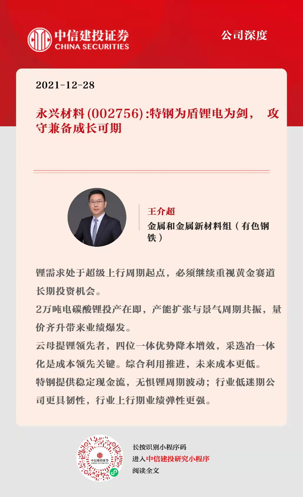 证券研究报告名称:《永兴材料(002756):特钢为盾锂电为剑,攻守兼备成长可期》