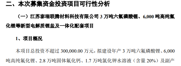 12月24日,天际股份(002759.SZ)发布公告称,拟非公开发行不超过1.21亿股,募集21.1亿元,用于子公司江苏泰瑞联腾材料科技有限公司3万吨六氟磷酸锂、6千吨高纯氟化锂等新型电解质锂盐及一体化配套项目建设,其中项目建设资金为16.1亿元,补充流动资金为5亿元。