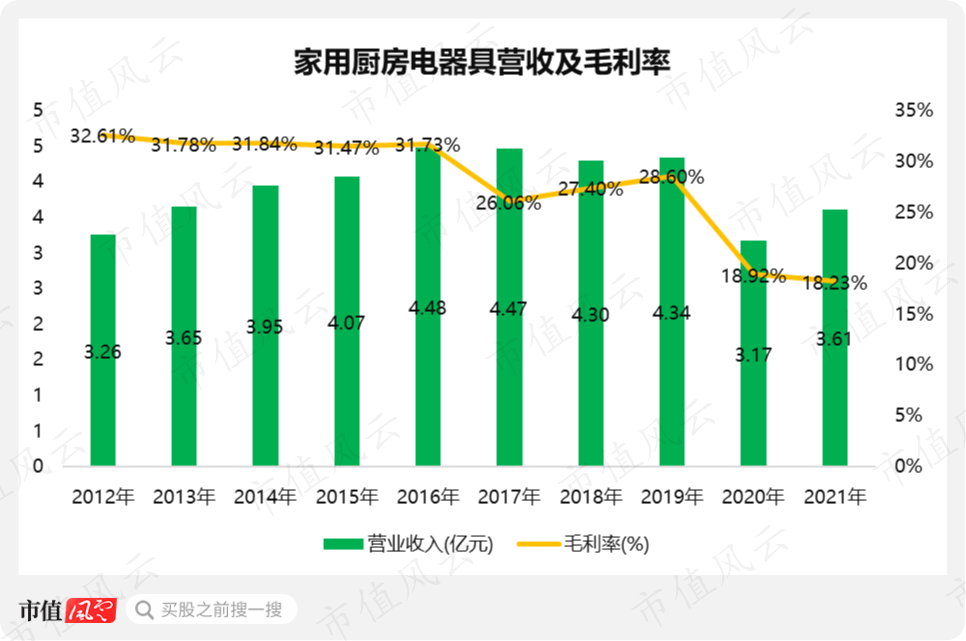 而且,近年来,天际股份的小家电产品销售低迷,营收下滑,毛利率也呈下降趋势。