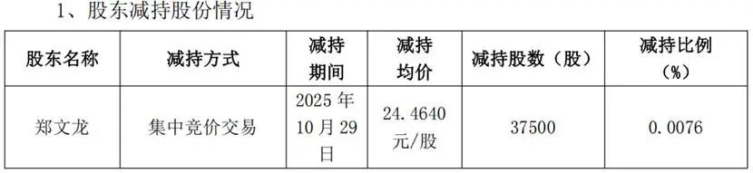 最终,他在10月29日这一天,按照减持计划的上限,出手了37500股,减持均价为24.464元/股,减持比例为0.0075%。