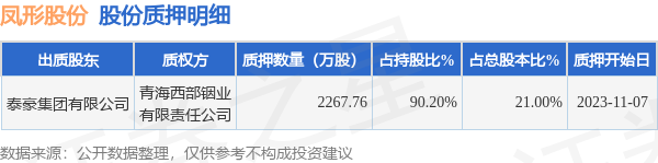 证券之星消息,凤形股份(002760)11月8日公开信息显示,股东泰豪集团有限公司向青海西部铟业有限责任公司合计质押2267.76万股,占总股本21.0%。质押详情见下表: