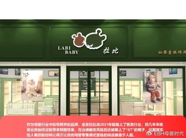 作为母婴行业中较早跨界的品牌,金发拉比自2021年就瞄上了医美行业,但几年来医美业务始终没能带来预期效果,在业绩触发风险后还被戴上了“ST”的帽子,近期其实控人筹划股份转让再次让传统母婴零售模式面临的挑战暴露于人前。