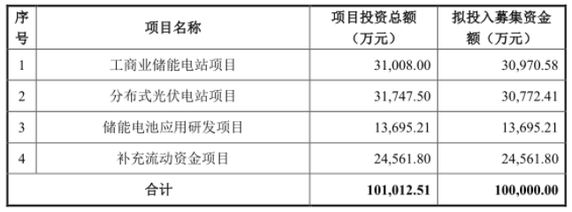 3月23日,普路通发布公告称,拟向特定对象发行股票的募集资金总额不超过10亿元。其中,约3.1亿元拟用于工商业储能电站项目、3.08亿元拟用于分布式光伏电站项目、约1.37亿元拟用于储能电池应用研发项目、2.46亿元拟用于补充流动资金项目。