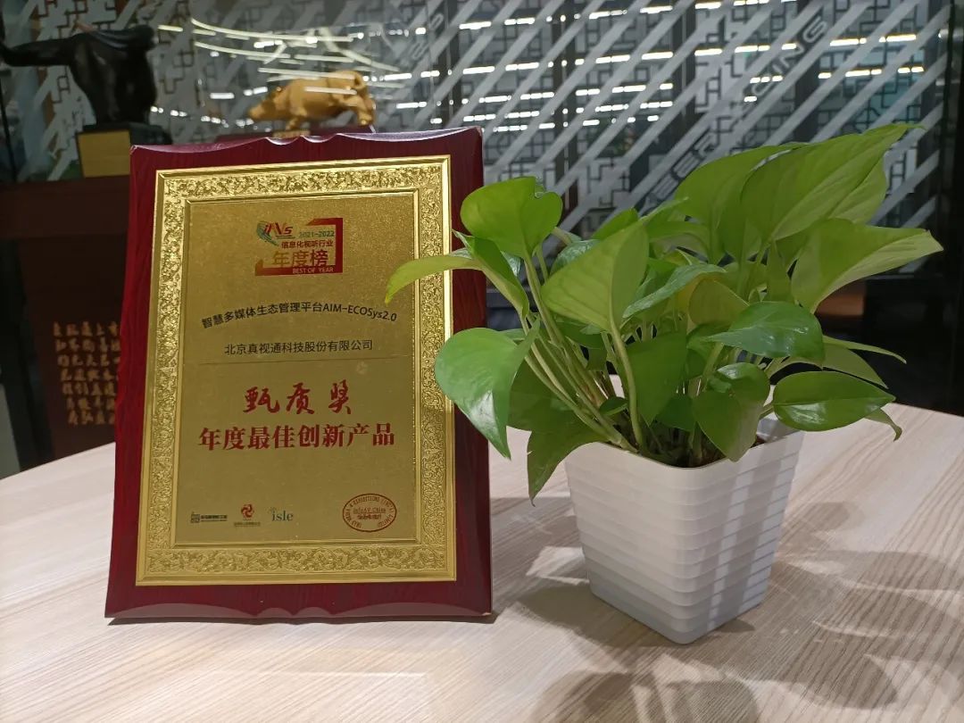 在此次的评定中,经主办单位与联合支持单位一致评定,真视通的“智慧多媒体生态管理平台”荣获“2021-2022信息化视听行业年度榜年度甄质奖”。能够获此殊荣,是信息化视听行业对真视通的认可。