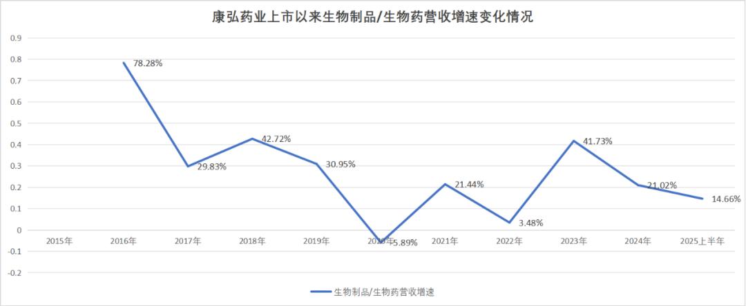 图:康弘药业生物药营收增速,来源:锦缎研究院