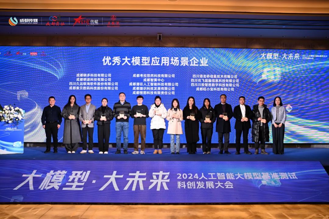 2024年12月25日,以“大模型·大未来”为主题的“2024人工智能大模型基准测试科创发展大会”在成都市高新区举行。大会邀请众多专家学者和权威机构,汇聚多个垂直行业大模型企业在内的超百家人工智能产业企业,共同探讨人工智能产业发展新方向,加快人工智能大模型应用场景落地。大会遴选出13家成都优秀大模型应用场景企业,久远银海名列其中。