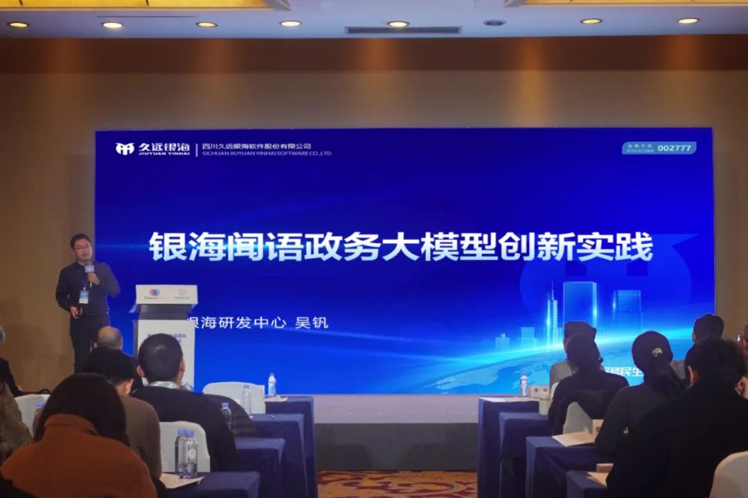 会议设置主题推介发布活动、产业合作洽谈活动、配套活动3类,开展精准对接。久远银海同多家科技企业一道在活动中展示企业风采,现场设置专属展位供参观交流。活动首日,久远银海于成渝区域协同合作洽谈环节作《银海闻语政务大模型创新实践》主题分享,围绕“银海闻语大模型”研发情况及其在政务领域助力行业服务创新、治理创新、决策创新的应用实践展开详细介绍,充分展示久远银海在人工智能领域的深厚积累及其在大模型技术、产品方面的强劲实力。