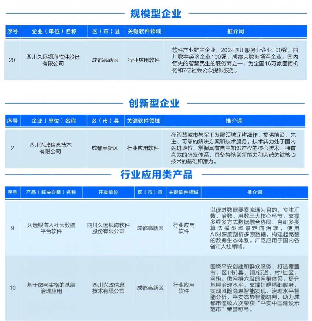 《2024年成都市软件和信息服务集群典型企业和产品目录》及“西部之光”特色软件产品