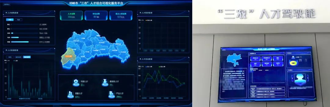 依托成都市人社智慧治理数据资源,打造邛崃市人才全景数据驾驶舱和村级人才服务站可视化大屏。构建1+9+N的“三农”人才留用服务数字治理体系,赋能邛崃市产业与人才服务治理工作,为打好人才基础、讲好人才故事、完善人才政策、优化人才队伍、服务人才就业等工作提供数据依据,有效破解产业支撑能力不足、管理精细化不够、风险防控不到位、跨部门协同不强等问题。