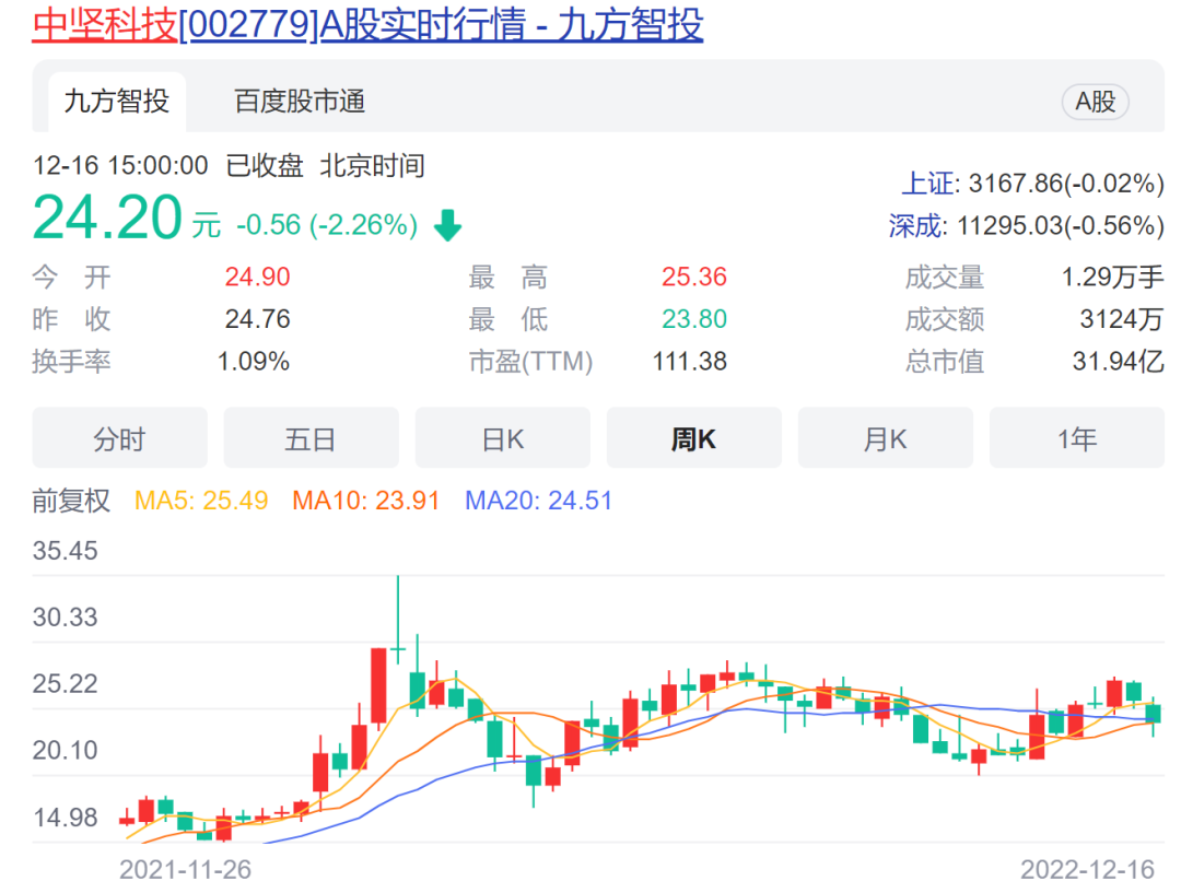 中坚科技主要经营园林机械产品,目前是国内最大园林机械产品出口商之一。在今年2月至3月初,该公司股价收获一波大涨,从最低不足18元/股,一直涨至35.47元/股,近乎翻番。