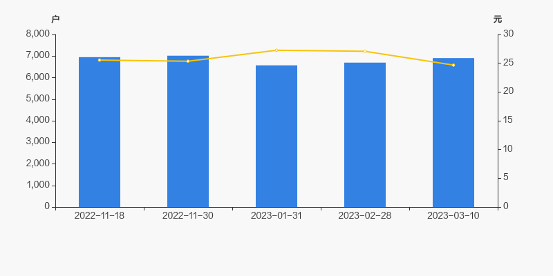 2022年11月18日至今,公司股东户数有所下降,区间跌幅为0.62%。2022年11月18日至2023年3月10日区间股价下降3.41%。