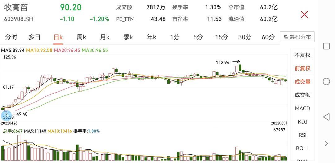 牧高笛是专业从事露营帐篷、户外服饰及其他户外用品研发设计、生产和销售的企业。今年3月底,公司股价还只有35.07元,而最新股价已逾90元。算下来,5个月内,公司股价涨幅157%。
