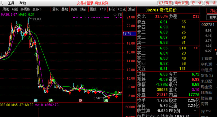 二级市场显示,新余投控入主奇信股份不到半年,奇信股份的股价便出现了闪崩走势。当前的股价也较新余投控受让股份的转让价格出现了大幅度的缩水。12月31日早盘,奇信股份的开盘价为6.72元/股,在利空消息的影响下出现大幅度的低开,最终收平于6.95元。