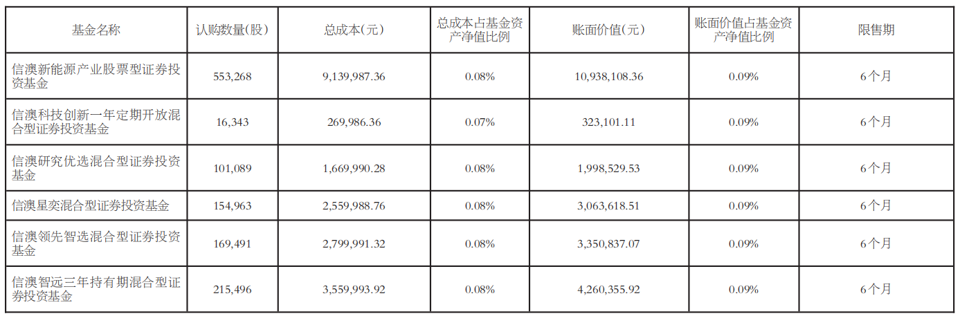 2023年2月15日,信达澳亚基金公告,公司旗下部分基金参加了可立克(代码002782)非公开发行股票的认购。根据《关于基金投资非公开发行股票等流通受限证券有关问题的通知》(证监基金字[2006]141号)等有关规定,公司现将旗下基金投资可立克非公开发行股票的相关信息公告如下: