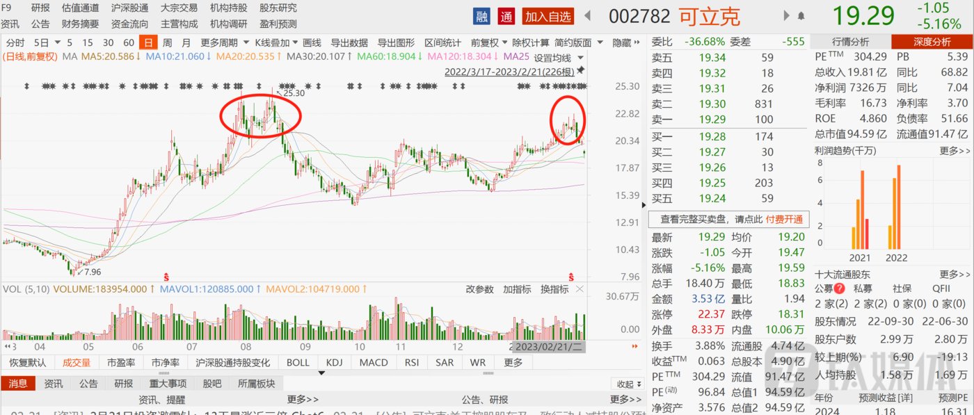 受消息影响,2月21日,可立克开盘后跳空低开然后盘中大跌超7%,截至收盘下跌5.16%,股价收报19.29元,总市值94.59亿元。