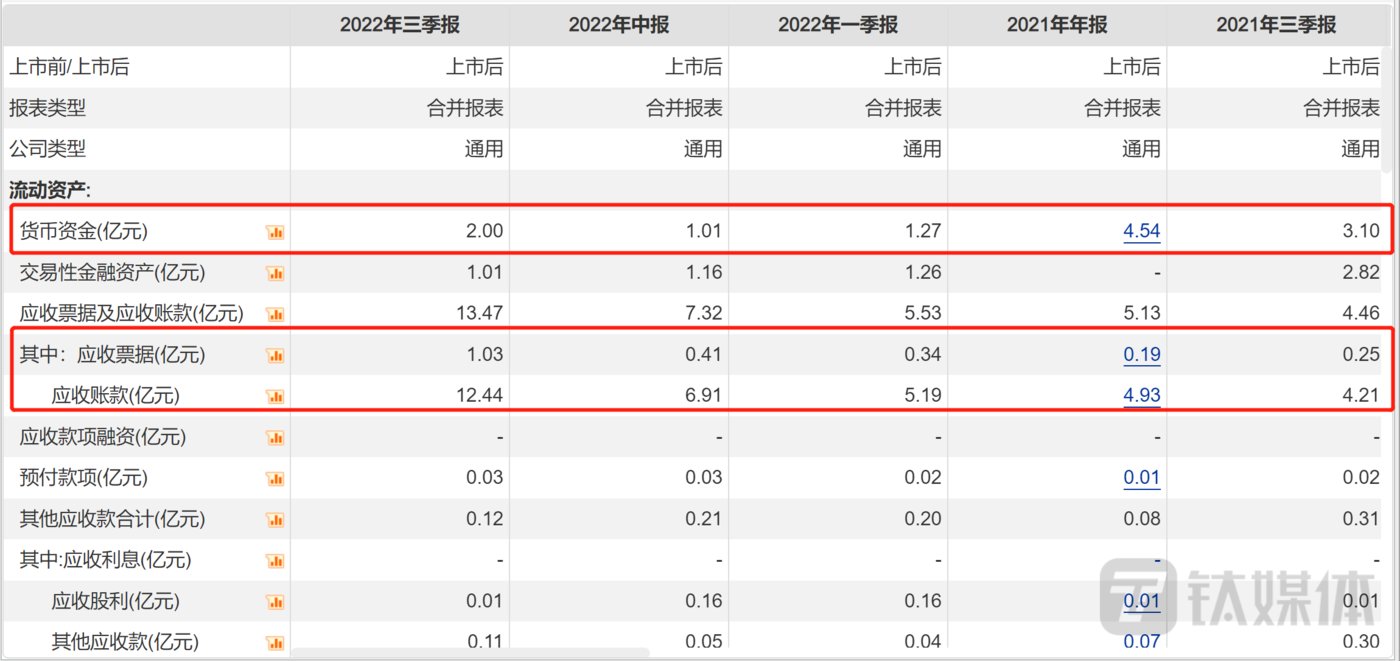 对于可立克,其目前的账面资金压力也是每况愈下。截至去年9月30日,可立克的账面资金仅为2亿元,较2021年底的4.54亿元大幅下降超50%。而应收票据及应收账款近年来却大幅攀升,从2020年的3.31亿元增资至2022年上半年的7.32亿元。