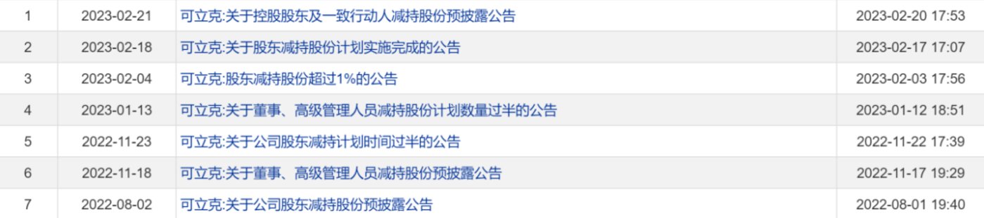 不过,据公告显示,这次减持并非近一年来可立克的首次减持。