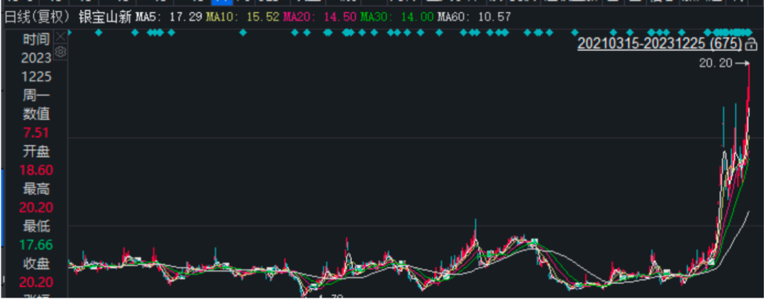 12月25日,银宝山新再次以涨停收盘,报收20.20元/股。
